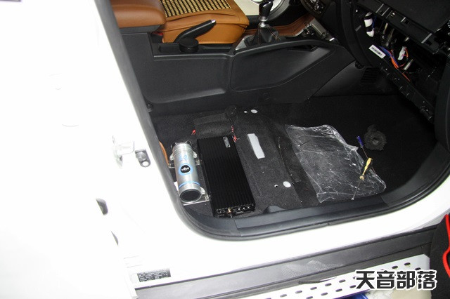 德国彩虹BEAT2功放体积小便于安装。藏在座椅地上什么的最合适。这台BEAT2便是安装在正驾驶座位底下。而且方便调试呢。 可能会奇怪白色的东东是啥。锡箔纸,防止干扰的