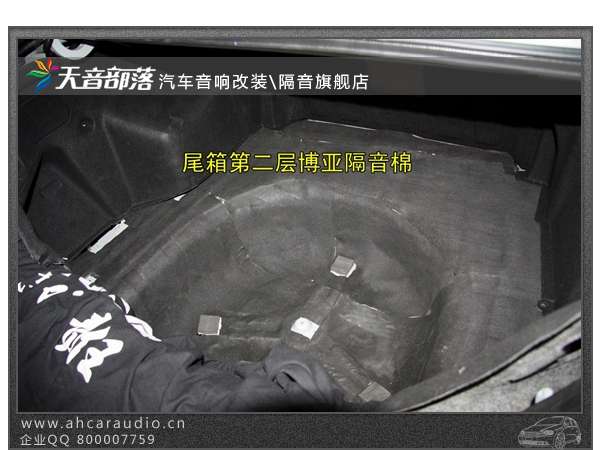 尾箱隔音采用双层隔音方法(第一层博亚止震板、第二层隔音棉)